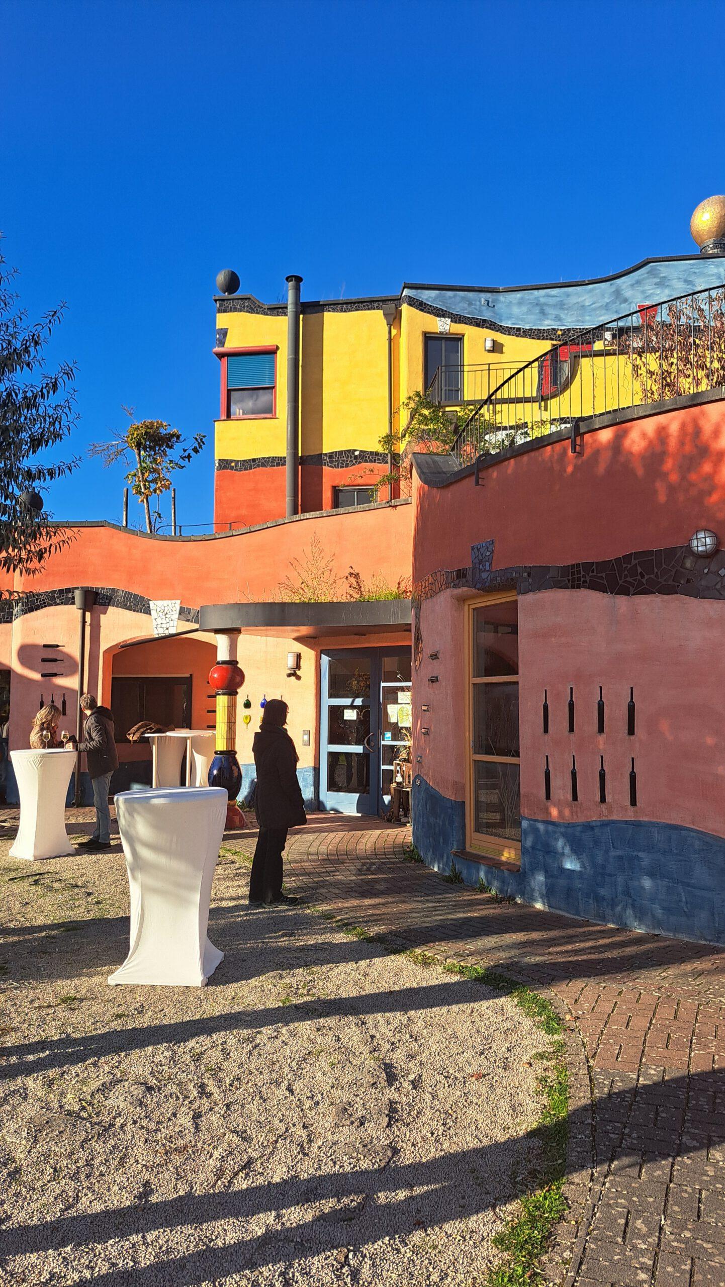 Danach fuhren wir weiter nach Untereisenheim, wo wir ein Weingut im Hundertwasserstil besuchten, einem weiteren Highlight unserer Reise. Neben Kunst und Stadtführung beeindruckte auch die unwahrscheinlich schöne Natur in diesem Herbst. Die Hänge mit den Weinreben leuchteten golden und die Bäume zeigten sich ebenfalls in ihrem schönsten, bunten Kleid.