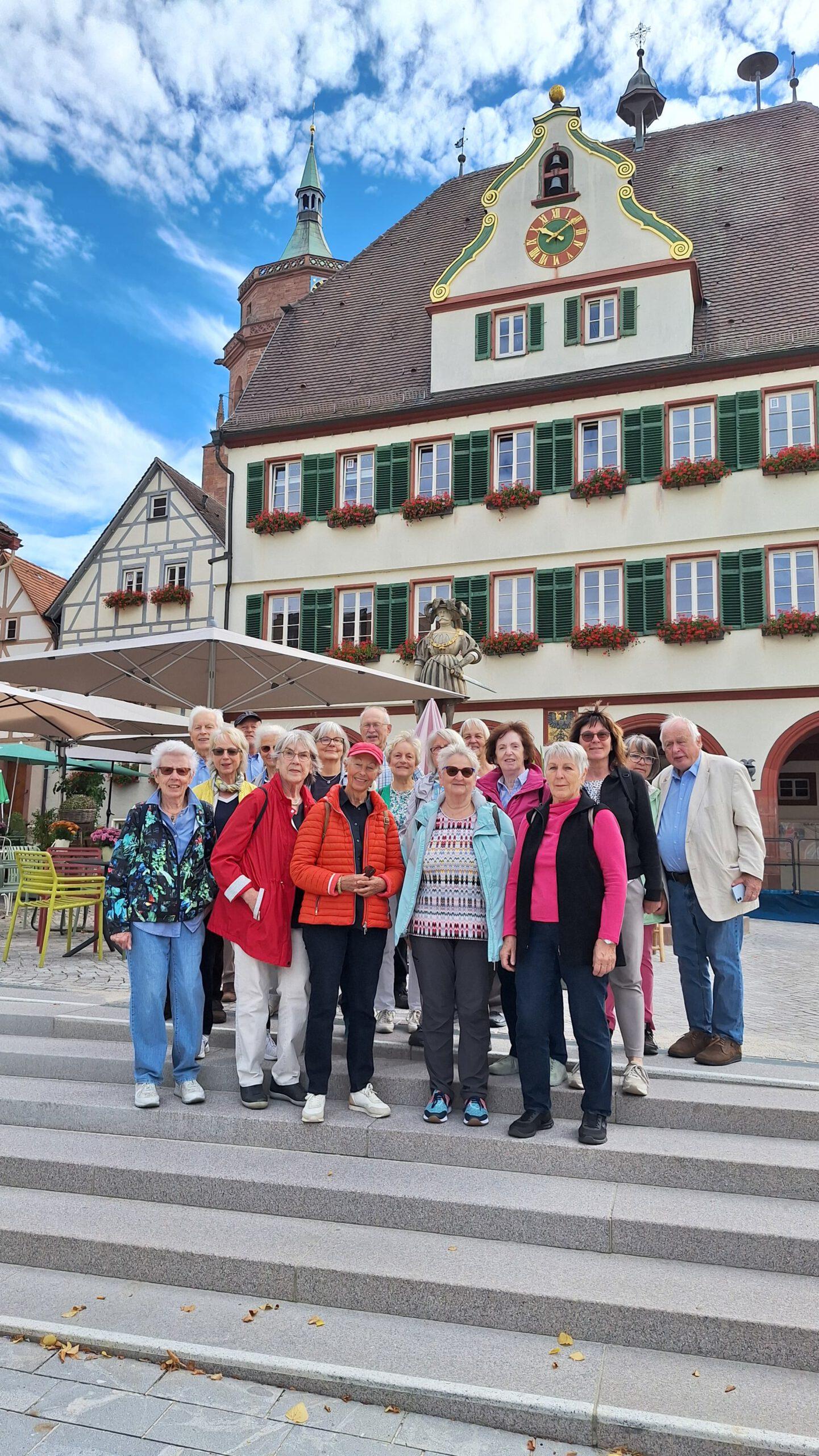 Bei idealen Wetterbedingungen nahm uns die sehr kompetente Stadtführerin, Frau Klein, an den Rathausarkaden in Empfang. Während des fast zweistündigen Rundgangs konnte das Wissen über Johannes Brenz, den Katechismus, die Reformation, Martin Luther, usw. aufgefrischt werden.